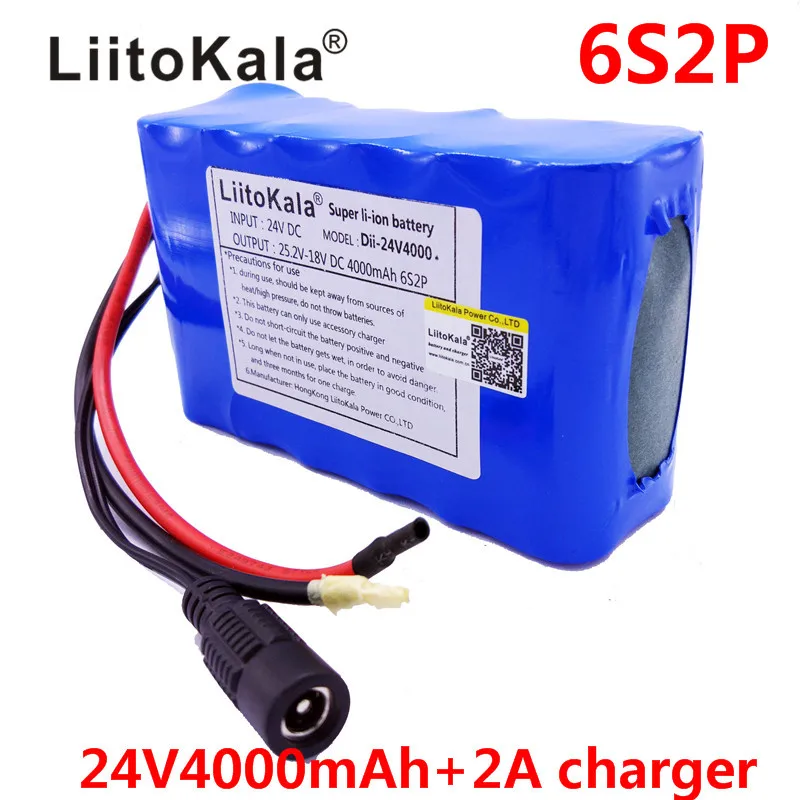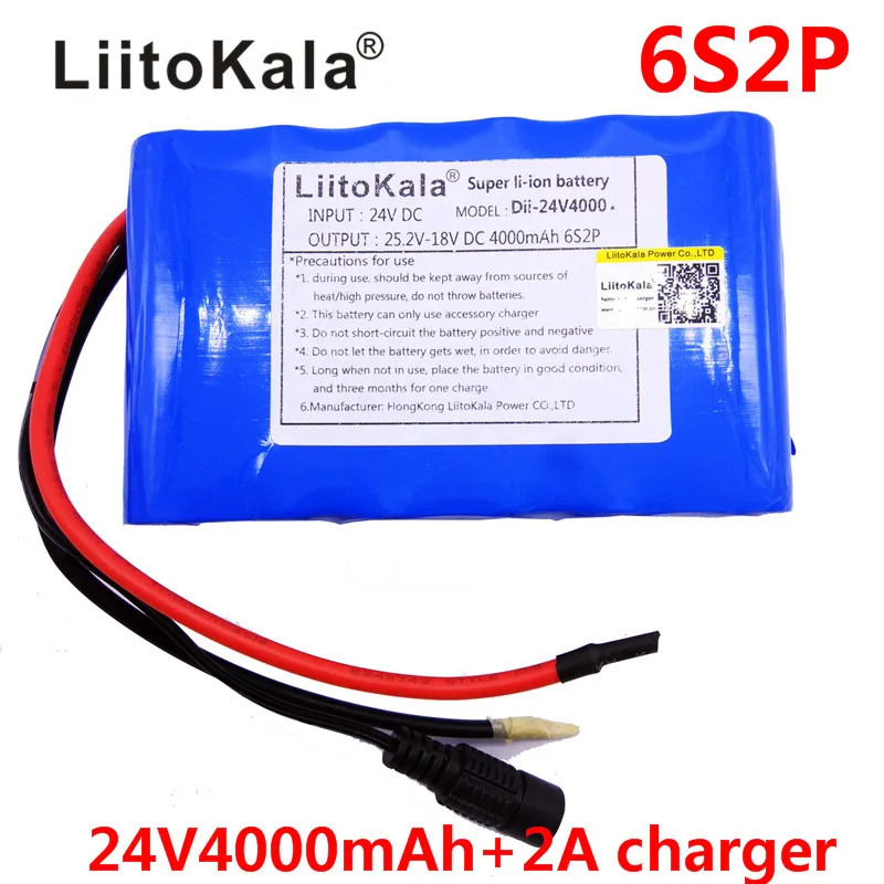 LiitoKala 24V 4000mAh Battery Pack 25.2V 4Ah 18650 Rechargeable Battery Mini Portable Charger For L