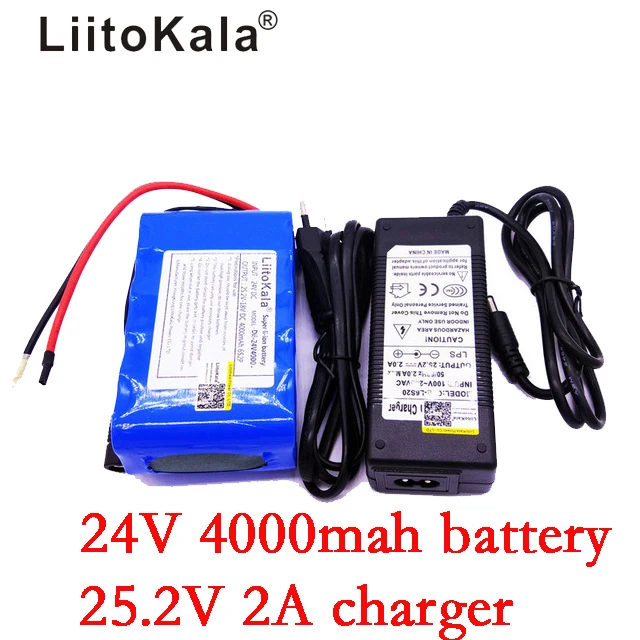 TOP LiitoKala 24V 4000mAh Battery Pack 25.2V 4Ah 18650 Rechargeable Battery Mini Portable Charger For L