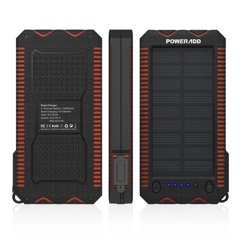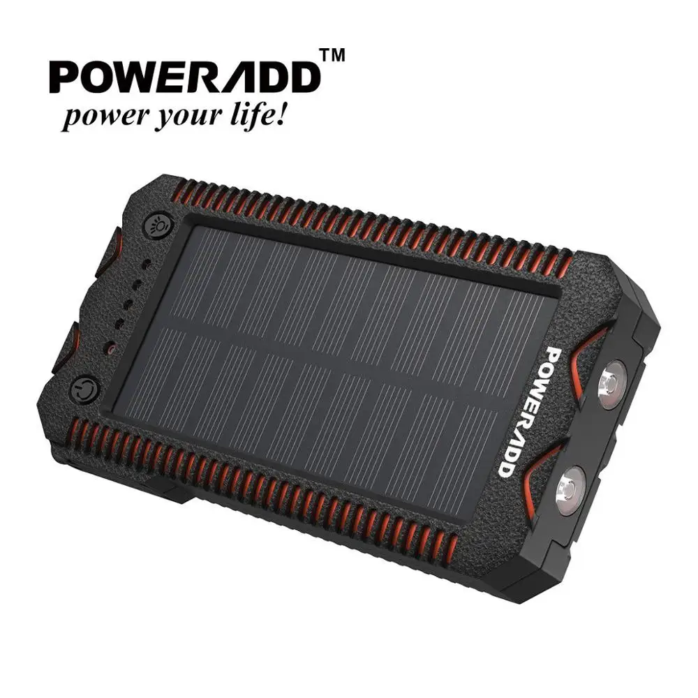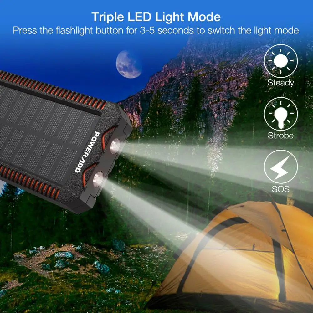 Poweradd Waterproof 12000mAh Solar Power Bank Portable Charger Dual USB Ports External Battery for
