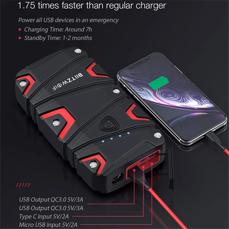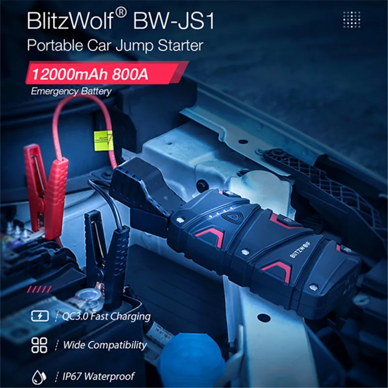 HOT SALE BlitzWolf BW-JS1 Portable Car Jump Starter 12000mAh 800A Emergency Battery Booster Power Bank Water